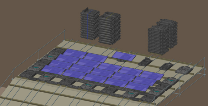 又フロートの一部が通路を兼ねる事により一つの連結箇所で、3個のフロートを連結する事が可能で、圧倒的な組立てスピードを実現します。単純な計算では1MW当たりの組立てスピードは他社比なんと-50%となります。(当社調べ)