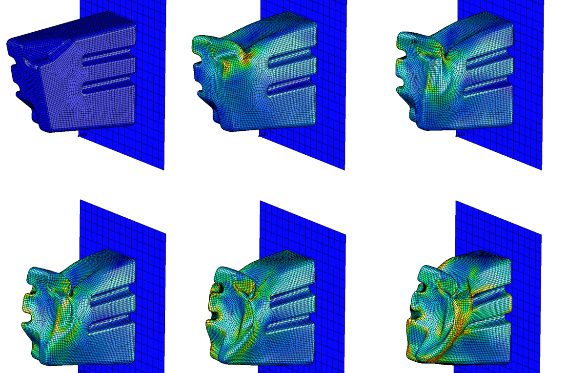 自動車用衝撃吸収部材を中心に解析を実施しており、ブロー成形解析結果の肉厚分布を反映することで大幅に精度向上を達成。手戻りの無い性能確保が可能です。