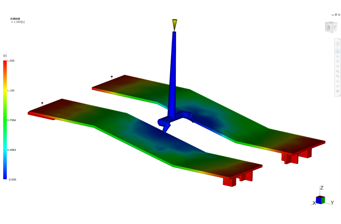 最適なゲート配置のご提案や各種不具合の未然防止のために、射出流動解析を実施しております。各種自動車部品での実績をもとに解析による成形品精度向上に貢献しています。